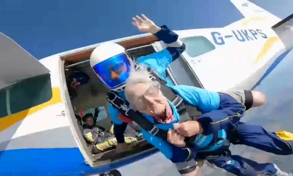 یک خانم ۱۰۲ ساله از بریتانیا تصمیم گرفت در روز تولدش به جای شمع روشن کردن، خودش را از هواپیما پرت کند.