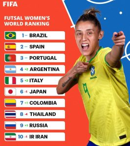در رده بندی جدید فیفا، برزیل در رتبه اول قرار گرفته و اسپانیا، پرتغال، آرژانتین در رده های دوم تا چهارم قرار دارند. ژاپن در جایگاه ششم این رده بندی است تا ایران با قرار گرفتن در رتبه دهم به عنوان دومین تیم فوتسال زنان قاره آسیا شناخته شود.